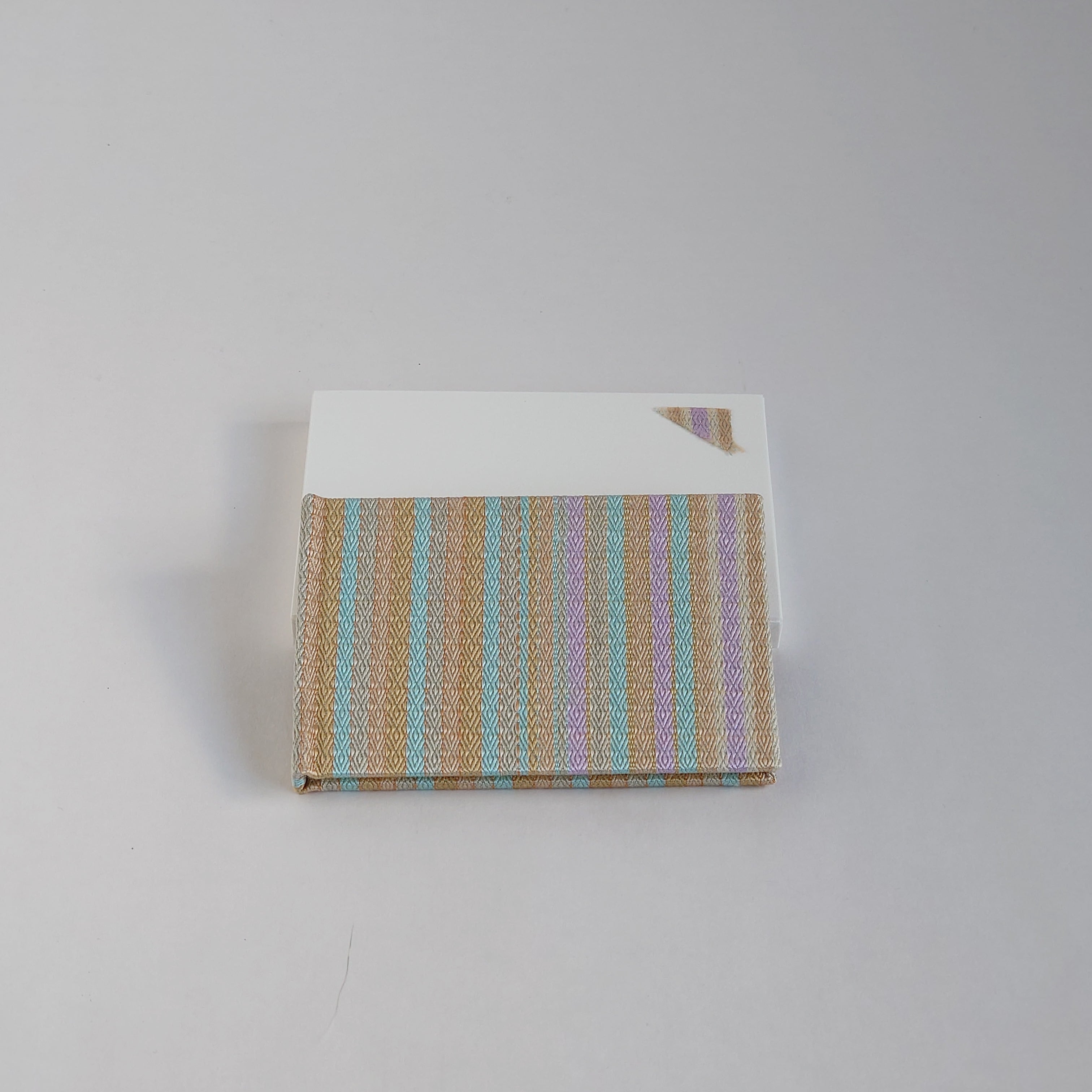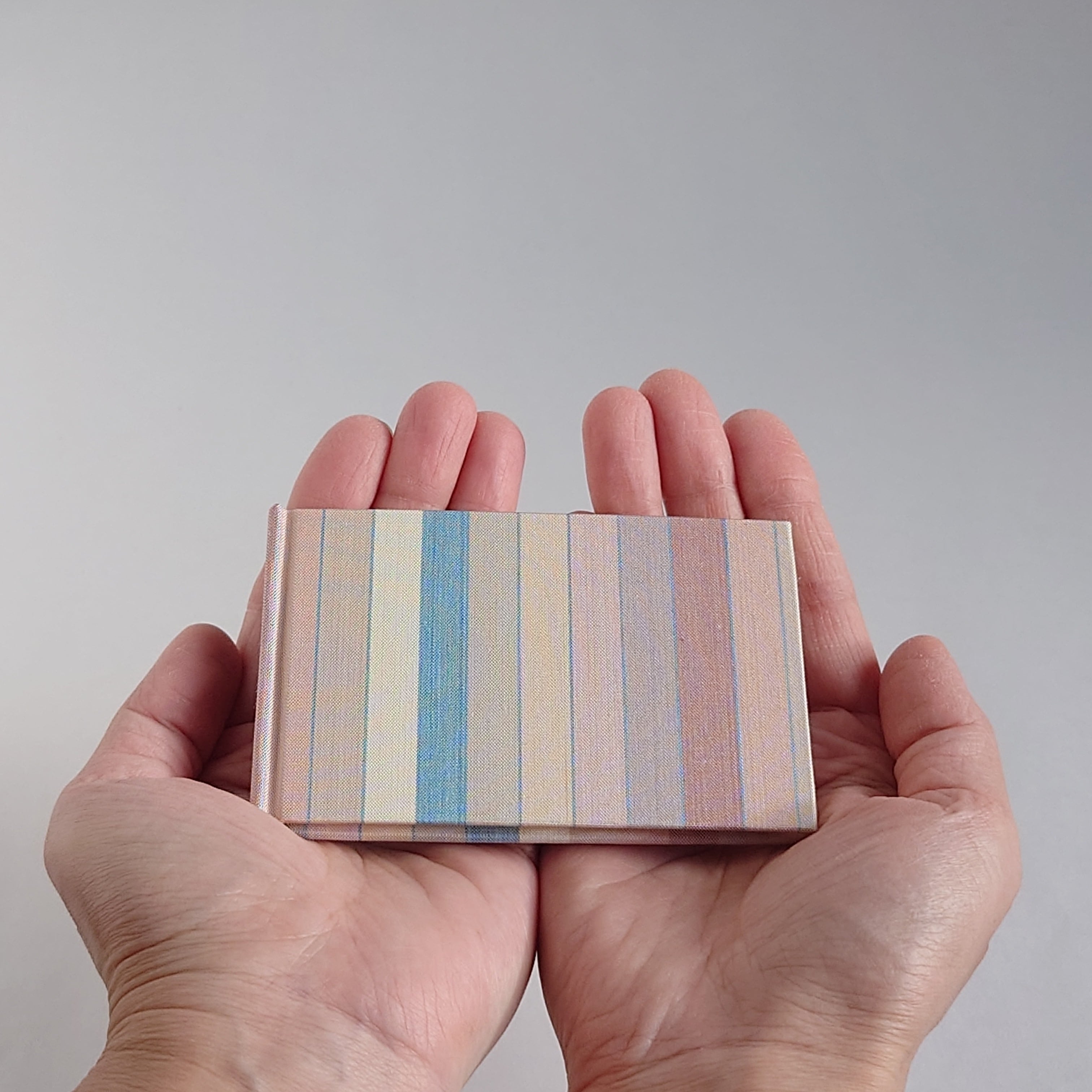 日常的に増えたり変わったりするパスワードや、家族の連絡先、家の保険などの情報をコレクションするように綴りたくて、織りためた布を厳選し、手製で仕立てていただきました。
